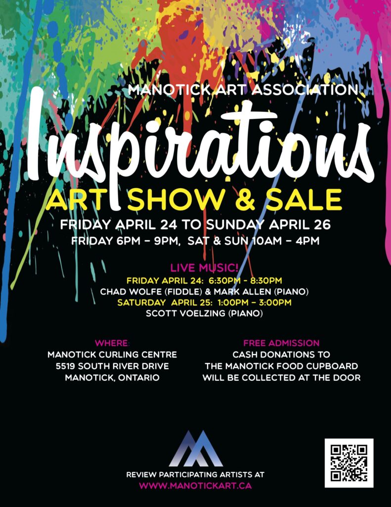 MAA offers two shows called “Inspirations”, one in the spring and one in the fall of each year. The spring show is juried and is held at the Manotick Curling Centre; the fall show is open to all members and is held in a local venue. MAA also has arrangements with several venues where members can exhibit their work.