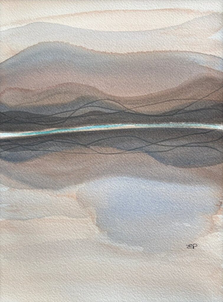 My work explores the fluid intersection of watercolor and ink, capturing the delicate balance between spontaneous abstraction and structural depth.